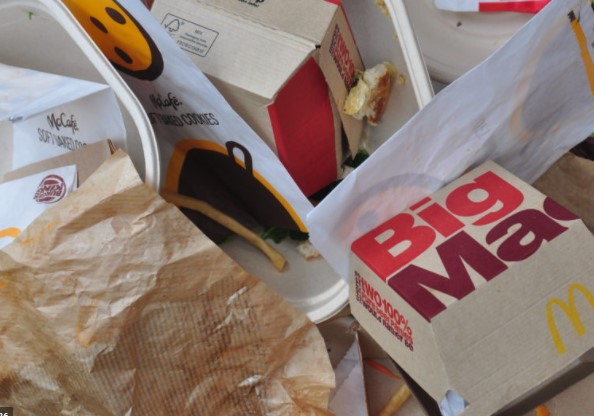 packaging including paper bags for french fries, wrappers for hamburgers, molded fiber salad bowls and